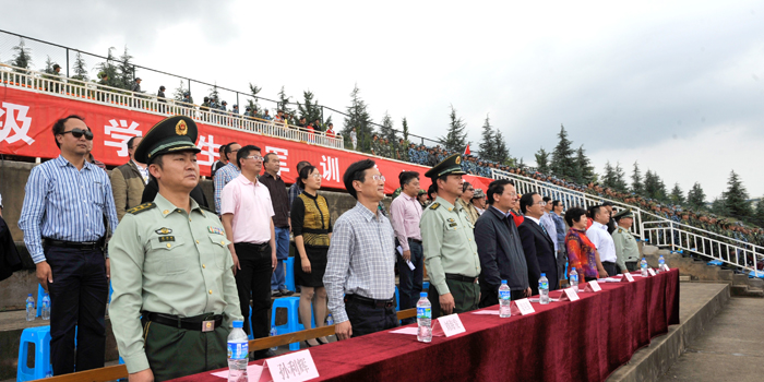 9月19日下午,beat365官网2014级学生军训总结大会在田径运动场隆重举行。学校党委书记陈世波,校长蒋永文,党委副书记、纪委书记李媛芬,副校长李翔、郭华、刘海发,武警边防部队士官学校副校长姜克强、继续教育处处长孙利辉、军需卫生系主任李海昌,beat365官网国防教育委员会成员单位领导、各院系党总支副书记、带队辅导员,2014级4790余名参训学生参加了总结大会。大会由副校长李翔主持。