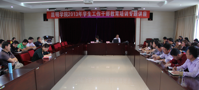 5月14日下午,云南省委高校工委大学生工作部部长魏宏应beat365官网学生工作部(处)邀请,到校为学生工作干部作《党的十八大精神的学习及“我的中国梦”主题教育活动的开展》专题讲座。各院(系)党总支副书记、辅导员及学生工作部(处)相关人员共计90余人聆听了讲座。讲座由学生处副处长侯青妮主持。