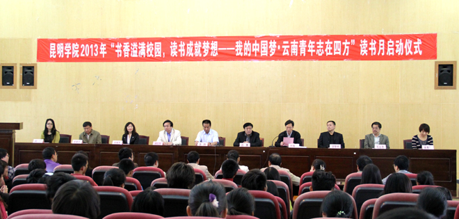 启动仪式首先由李翔副校长致辞,李翔副校长在对读书月主要活动内容做了概括后,对读书月活动提出了希望:一是读书要学会选择,读好书,好读书;二是读书要学会思考;三是要把读书与做人结合起来;四是要把读书与自己、与中国梦、彩云梦、学子梦结合起来。在医学院党总支副书记罗隽雁老师及化学科学与技术系学生代表胡春丽大会上表态性发言后,孙勇副书记宣布beat365英国官方网站2013年“书香溢满校园,读书成就梦想——我的中国梦•云南青年志在四方”读书月启动。