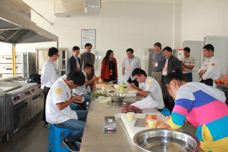 4月25日上午蒋永文校长、李媛芬副书记、罗明东副校长到烹饪实验实训大楼的考试现场进行巡视和指导工作。在巡视过程中蒋永文校长说,烹饪专业非常有特色,要做大做强,要加强餐厅建设,实现教学与实际经营的结合。可以加大专业宣传,扩大烹饪专业的影响,与行业合作,举办各种形式的培训班等,寻求社会效益和经济效益的双赢。同时要加强教师队伍建设,可以引进一些有专业技能的烹饪大师,做强本科专业。罗明东副校长肯定了考试各环节的组织和安排,要求走内涵发展之路,凸显专业特色,办成优势特色应用型本科。