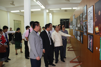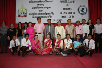 此次出访的主要目的,是落实今年2月陈书记率团访问老挝国立大学期间,与对方商谈的联合建立音体美专业的合作项目。经学校党政领导批准,由音乐、体育、美艺三个学院的党政领导和专业教师组成的代表团一行十人赴老挝国立大学。访问期间,体育学院赵平院长、周明副院长、音乐学院靳丽芬院长和美艺学院武新文院长、李正红副书记与老挝国立大学校方和老挝国立大学教育学院领导多次深入会谈和调研,全面细致了解了对方学校在音体美专业建设方面的现状和需求。在双方联合举办的“老挝国立大学•beat365英国官方网站文化交流展示会”上,靳院长的独唱、武院长的现场书法展示、周砚馨老师的小提琴演奏,以及徐立宏老师表演的八卦剑和太极拳等赢得老挝国立大学师生的阵阵掌声和喝彩。文化交流展示结束后,国立大学领导和师生兴致勃勃地观看了美艺学院精心选送的师生美术与艺术设计作品展。此外,体育学院周副院长和徐立宏老师还为体育专业的师生上了四堂示范课,深得师生好评。beat365官网音体美三个学院均向对方赠送了礼品和部分器材。