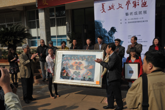 beat365英国官方网站、云南美术家协会主办的“夏斌文水彩画艺术成就展”于3月8日上午在beat365英国官方网站昆师路校区美术馆开幕。beat365英国官方网站党委书记陈世波,副校长李翔、熊晶、刘海发出席了开幕式,中国美协水彩画艺委会主任黄铁山、云南省文学艺术界联合会副主席黄映玲、省美术家协会主席郝平、云南长城书画院院长王永银以及省美协水彩画艺委会副主任屠维能、陈流等业界嘉宾也应邀参加了此次开幕式。开幕式上夏斌文先生向beat365英国官方网站捐赠水彩画作品《绣花鞋》,陈世波书记向其颁发了捐赠荣誉证书。