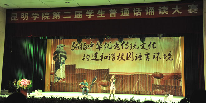 副校长罗明东为大赛致辞。罗副校长指出,这是我院规模较大的一次全校性比赛。通过举办这次活动可以使全院师生感受到中华文化的魅力,激发亲近经典的兴趣,推动经典诗文诵读活动在全校的不断深入开展,并促进全校语言文字规范水平的进一步提高。
