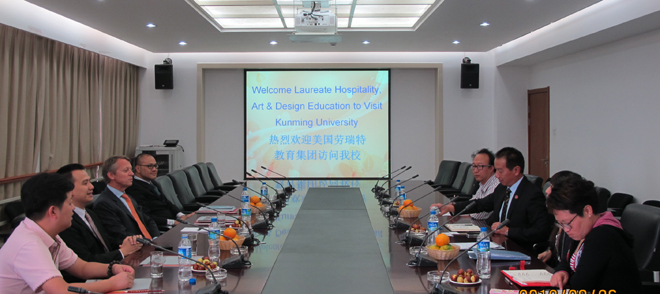 9月26日上午,美国劳瑞特教育集团全球副总裁Johan Stromstater先生一行三人来访beat365官网。学校副校长李翔代表校领导会见了来访外宾,校办主任杨越、旅游学院院长窦志萍、美术与艺术设计学院党总支书记李晋德及国际交流合作处工作人员陪同会见。