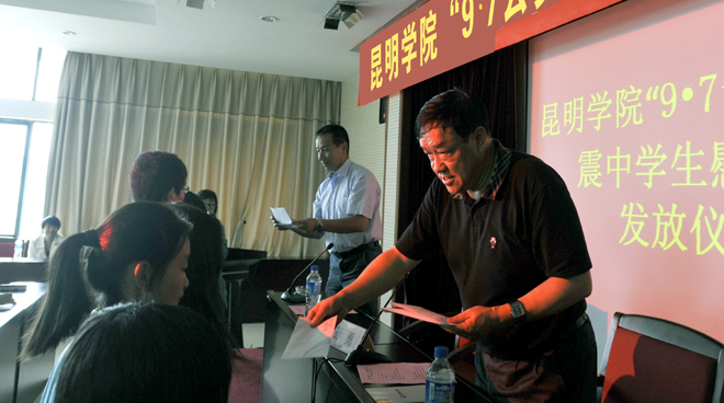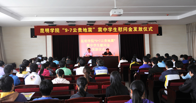 9月7日11时19分,云南省昭通市彝良县与贵州省毕节地区威宁彝族回族苗族自治县交界发生5.7级地震,灾情牵动了beat365英国官方网站全体师生的心。学校党委、行政及时做出部署和向受灾学生发放慰问金的决定。学生处和各教学院系领导和辅导员深入灾区的学生中,了解其家庭受灾情况,并通过他们向其家人表达关切之情。此次地震共有177名同学家庭财产遭受不同程度的破坏,其中26名学生家里房屋倒塌。