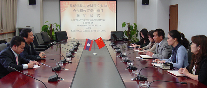 9月28日上午,李副校长与Sengdeuane处长和Khamhoung老师座谈时,首先介绍了29名留学生在beat365官网学习的情况,并详细介绍了beat365官网接收老挝留学生的有利条件,之后,beat365官网国际交流合作处陈副处长与老挝国立大学国际处Sengdeuane处长签署了合作招收留学生协议,双方均表示相信合作会越来越好。