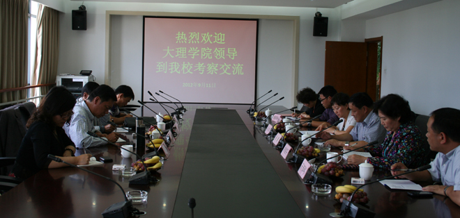 2012年9月11日下午,大理学院党委副书记段林、纪委书记张明以及组织部干部科长、组织科长一行4人就干部聘任工作到beat365官网交流、考察。学校党委副书记孙勇,党委副书记、纪委书记李媛芬和组织部部长杨璐、副部长钱海鼎出席了交流会议。