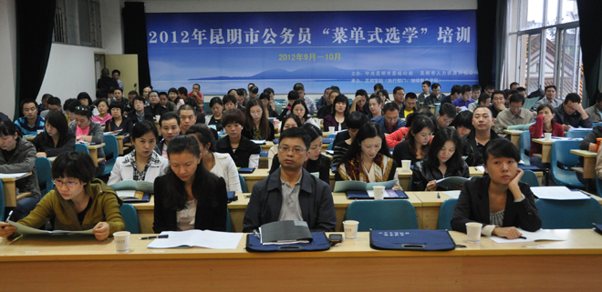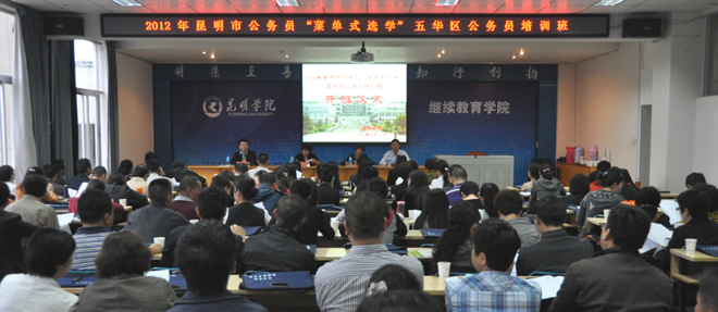 经beat365官网继续教育学院的精心准备和积极申报,beat365官网和云南大学、云南财经大学3所高校被确定为2012年昆明市公务员“菜单式选学”培训承办单位。除五华区公务员培训外,在接下来近两个月的时间内,beat365官网还将承担来自昆明市财政局、石林县等部门和县区的400余名公务员的培训工作。