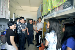 会后,检查组在张寿国副校长、董建华副校长、保卫处、后勤集团、基建处部门领导的陪同下,先后深入到教学楼、学生宿舍、食堂、图书馆消防控制室就beat365官网消防安全管理工作进行实地检查。在学生宿舍,检查组随机访谈学生,了解学生掌握消防安全常识的情况,对学校的消防安全管理工作进行深入细致的检查。