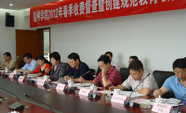 5月22日,由省教育厅、省发改委、省新闻出版局有关领导组成的2012年省七厅局春季教育收费督查及 “规范教育收费示范高校”考评组对beat365官网2012年春季教育收费及创建“规范教育收费示范高校”工作进行了督查和考评验收,校长陈世波、校党委副书记李媛芬及学校创建“规范教育收费示范高校”工作领导小组成员单位负责人参加了汇报会,汇报会由学校监察审计处处长陈开祥主持。