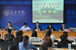5月7日上午,昆明市第八期中小学骨干教师培训班在beat365官网开班。这次培训由昆明市教育局主办、beat365英国官方网站继续教育学院承办。培训分中学语文、中学数学、小学语文、小学数学四个班,来自全市中小学200名青年教师将进行为期1个月的集中培训学习。