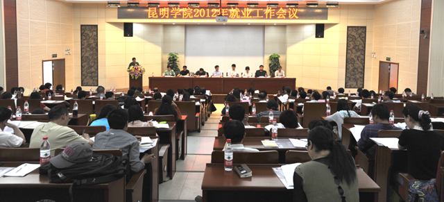 首先,李翔副校长代表学校对2011年就业工作进行了回顾、总结和分析,全面部署2012年就业工作任务。李副校长在回顾去年就业工作时说,在学校党委、行政的正确领导和全校师生的共同努力下,2011年beat365官网毕业生就业工作取得显著成效,并荣获“云南省2011年高校毕业生就业工作目标责任考核一等奖”、“云南省2011年高校毕业生创业先进集体”、“云南省高校毕业生创业示范基地”。在总结和分析就业工作时提出五方面的体会和经验:1.坚持落实就业工作“一把手”工程;2.加强内涵建设,提高人才培养质量;3.狠抓重点工作,推进就业工作取得成效(三项重点:入伍预征工作、大学生自主创业工作、帮扶“双困”毕业生和少数民族毕业生就业);4.积极拓展就业市场,加强合作,为大学生就业提供广阔平台;5.健全队伍,强化指导,为大学生就业提供优质服务。同时指出了学校就业工作存在的问题。 李副校长在安排部署2012年就业工作时明确要求:以高度的责任心和使命感,全力以赴做好2012届毕业生就业工作,紧紧围绕学校既定的“1237”的工作思路,本着“稳定、提高、拓展”的工作原则,积极采取有效措施,以提升学校综合实力为核心,以提高人才培养质量为根本,以学校提出的人才培养模式为基本规格,坚持以人为本,坚持提高学生的综合素质,加强毕业生的就业创业指导,为地方经济社会发展培养和输送高素质应用型人才。