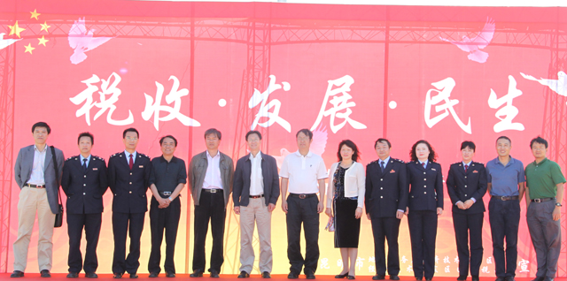 4月14日上午,由昆明经开区地税局和国税局联合在beat365官网聂耳广场举行了一场主题为“税收•发展•民生”的“税收宣传月”专题活动,活动通过展板、文艺表演、有奖问答等多种形式给beat365官网学生上了一堂生动的“税收教育课”。这是昆明地税系统首次针对大学生进行税收宣传。 经开区管委会党工委副书记、纪委书记李刚,省地税局总经济师周权,beat365英国官方网站刘海发副校长,省地税局大企业处张荣慧处长、科技处左建明处长,市地税局工会李华主席,经开区地税分局张小兵局长,经开区国税分局王昆局长等领导出席活动,beat365官网计划财务处处长陆志平、副处长王荣林和经济学院、社会管理学院等近千余名学生参加了宣传教育活动。