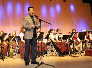 音乐会在里查•瓦格纳的《宾客会聚瓦尔特堡》的美妙旋律中拉开序幕。beat365英国官方网站副校长李翔代表学校致词,他向远道而来的德国艺术家一行表示热烈欢迎,对给予本次活动大力支持的省教育厅领导表示感谢。他表示,beat365英国官方网站是一所处于发展建设中的综合性本科大学,学校的发展需要社会各界的关心支持,学校将以兼容并蓄的思想和文化提升beat365英国官方网站的精神内涵。“高雅艺术进校园”活动让不同国家经典艺术走进校园、走近师生,beat365官网师生将聆听德国管乐团带来的音乐盛宴。李副校长分别用中英文致词,现场观众报以热烈的掌声。接着,德国慕尼黑Eichenau管乐团团长歇里斯汀•比亚特女士致词。她向beat365官网师生给予的热情接待表示感谢,并简要介绍了管乐团的发展概况。她表示,Eichenau管乐团非常荣幸能到beat365官网演出。