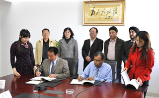 会谈开始时,李翔副校长热情介绍beat365官网参会人员并致欢迎词。他在介绍beat365英国官方网站办学与发展概况的同时,表明了beat365官网合作诚意及意向。印度可爱国际大学国际交流处阿吉德博士介绍了印度和本校办学的基本情况,向与会者播放了印度经济、教育发展和可爱国际大学的概况。同时他认真解释说明了可爱国际大学与beat365英国官方网站签订合作谅解备忘录的主要内容条款。主要涉及教职工互换学习项目、高年级学生第七学期互换实习6个月、“2+2”双子项目(如两国农学、城建专业学生前两年在本国学校学习,后两年交换到对方学校学习,毕业时同时拥有两校毕业证书)、提供新增专业技术支持(如医学院药剂学)、双方创办语言培训中心(教双方教师、学生学习英语、中文)、提供学生家长查询的IT支持系统、建立两校学生短期文化旅行交流活动等。