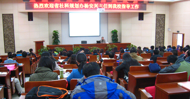 杨主任首先介绍了《关于做好2012年度国家社会科学基金项目申报工作的通知》,指出“文化大繁荣、大发展”是今年国家社科基金的申报重点。与往年相比,今年国家社科基金申报有所变动,如2012年申报数据代码表有变动、自选项目与指南规定项目同等对待等等。接着,杨主任从多年从事社会科学基金项目申报管理工作与研究的实践经验出发,结合《国家社会科学基金项目申请书》及《课题论证》活页,对项目选题、国内外研究成果、研究意义、主要研究内容等方面的设计和撰写进行了细致解读和深入指导。