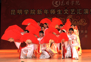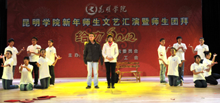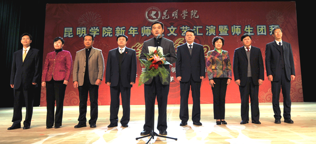 活动上,全体学校领导走上主席台给全校师生拜年。校党委书记梁晓谷代表学校党政领导班子向全校师生员工致新年贺词。梁书记表示:在过去的2011年,学校按照“超常规、跨越式、追赶型”的发展思路,全力、全方位加强内涵建设,教学、科研、管理和服务的水平大幅提升,学校各项事业全面、协调发展,在建设“全国地方同类高校领先、云南省一流、中国知名的高水平、特色浓、区域性、开放型、国际化的教学科研型综合大学”付出了艰苦的努力,在全校师生共同努力下,2011年beat365官网学科建设、学生工作、对外交流合作、后勤社会化改革、新校园建设、党建和党风廉政建设等各项工作取得突出成绩。省委第九次党代会为我们描绘了宏伟蓝图;学校“十二五”规划为我们指明了努力的方向。新的一年,学校将继续深入推进内涵建设,不断提高教学、科研整体水平,不断加强和改善管理,不断提高服务质量,继续坚持以服务地方经济社会为己任,立足昆明、研究昆明、服务昆明,主动融入地方经济发展;继续推进党建和党风廉政建设,在全校师生员工和离退休同志的支持下,学校将以崭新的面貌走进2012年。