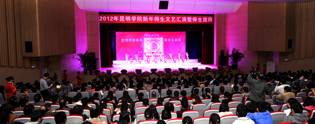 为迎接2012年新年的到来,丰富校园文化生活,展现师生风采,凝聚爱校精神,值此辞旧迎新之际,由学校团委、学校工会联合主办的“给力2012”新年师生文艺汇演暨师生团拜活动于12月30日在学生会堂隆重举行。