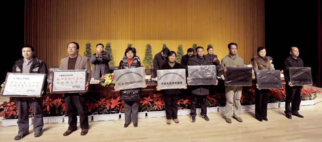 全体与会校领导分别向获奖师生个人、先进集体颁奖,向相关研究机构、基地、中心授牌。