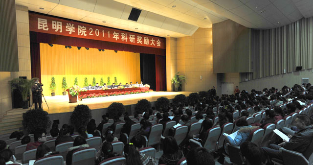 同时,陈校长指出了beat365官网科研工作存在的薄弱环节,希望今后增加科研项目总体数量,加强高水平纵向项目和横向项目研究,扩展科技成果奖项数量,提高教师参与科研面和科研层次。从2012年起,一要在争取国家级奖项方面取得突破。二要加大各级、各类项目申报力度。三要进一步调动广大教师的科研积极性,着力加强政、产、学、研合作,积极开展应用研究。四要认真落实硕士点、重点实验室、工程中心、中央财政支持地方高校等项目建设。五要加强对学生科学精神和科研技能的培养。我们一定要抢抓云南桥头堡建设机遇,充分发挥地处省会城市的优势、学校学科最全的优势,积极创新思路,整合资源,争取学校内涵建设得到不断提升,力争科研工作上水平、创一流,超越省内院校,追赶省会城市地方高校,不断迈上新的台阶!