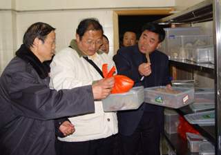 考评组一行先检查了beat365官网生科系化学危险物品保管室,对化学危险物品的购买、保管、安全防范等问题进行了详细了解;在润泽苑食堂,检查了操作间、储物间和仓库,与在食堂巡逻执勤的学生治安服务队亲切交谈;在润泽苑宿舍,检查了宿管的门卫登记制度;在保卫处会议室,查阅了学校创建平安校园的工作台帐。