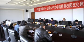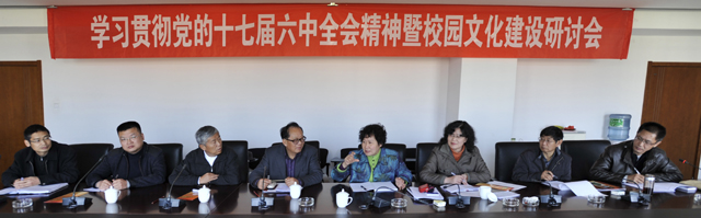 11月24日,beat365官网为深入学习贯彻党的十七届六中全会精神,使beat365英国官方网站文化建设更好地与云南省、昆明市文化建设有机结合,弘扬地方文化优秀传统,做好高校文化传承与创新工作,由校宣传部牵头组织,在校办公楼411会议室,举办了“beat365英国官方网站学习贯彻党的十七届六中全会精神暨校园文化建设研讨会”。会议特别邀请了云南省博物馆徐继涛教授、罗钰教授,云南大学杨寿川教授,云南师范大学朱端强教授参加。beat365官网宣传部张立新部长、沈中灿副部长,人文学院桂彦南院长、吴彦勤副院长、尹相如教授、柴毅龙教授及相关工作人员参加了会议。