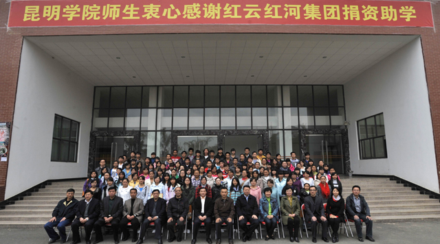 最后,与会校领导、红河集团来宾、受助学生集体合影。本次助学金颁发仪式在和谐欢快的气氛中圆满结束。