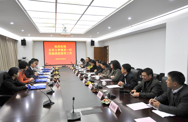 孙勇副书记在听完介绍后,首先代表学校欢迎王副书记一行到beat365英国官方网站参观指导工作,并转达梁书记和陈校长对王副书记一行的问候。孙副书记说,东华大学是一所历史悠久、办学经验丰富的知名大学,尤其在一些学科领域上独树一帜,在国内高校同类学科专业中占有领先位置。希望通过交流,从中借鉴和学习贵校在建设发展中的好经验好做法,同时希望王副书记一行对beat365英国官方网站的建设发展提出宝贵意见和建议,更好地促进部门和学校的建设发展。随后,孙副书记向来宾介绍了学校合并组建情况和目前学校在教学、师资、科研、人事管理、党建等方面的的建设发展情况。