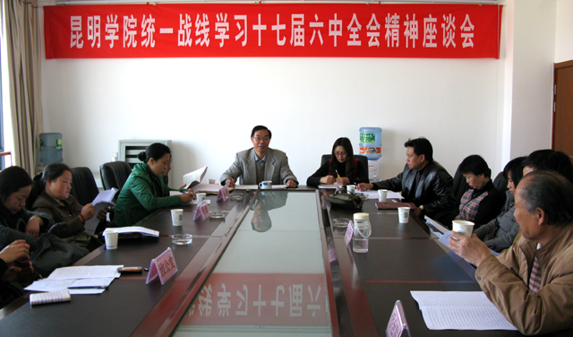 为响应学校党委关于学习贯彻党的十七届六中全会精神的号召,引导beat365官网统一战线成员认真学习领会十七届六中全会精神,积极参加学校校园文化建设,11月23日下午,党委统战部召开beat365英国官方网站统一战线学习十七届六中全会精神座谈会,各民主党派和侨台联合会基层组织负责人、总支、支部委员和代表20余人参加座谈会,党委统战部张云权部长主持座谈会。
