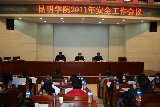 安校园创建活动》主题讲话。张副校长分析了当前加强学校安全维稳工作的形势及重要性,全面总结了2010年下半年至今beat365官网安全工作,并就当前和下一阶段安全工作作了安排部署。他指出:学校整体搬迁新校园后,通过强化综合治理工作,落实安全工作责任制;加强制度建设,强化管理工作;建立适应新校园特点的人防、技防、物防安全防控体系;精心组织,认真抓好大型活动安保工作;开展安全检查,消除安全隐患;妥善处置突发事件、各类案件,及时化解矛盾;标本兼治、广泛开展安全宣传教育七个方面的工作。校园实现安定有序、治安稳定,安全工作不断取得新成绩,平安建设跨上新台阶。学校2011年被昆明市国家安全工作领导小组授予“国家安全、人民防线工作先进集体”、被昆明经济技术开发区管委会评为“2010消防工作先进单位”;beat365官网保卫处也被省公安厅评为“2010年全省企事业单位治安保卫工作先进集体”,被市政府评为“2010年度经济文化保卫工作先进