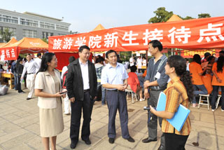 学校党政领导十分重视新学期教学和新生报到工作,党委书记梁晓谷、校长陈世波与各位校领导分别深入教学一线检查开学教学情况,并到聂耳广场新生报到点,了解新生报到具体情况。检查中,各位校领导分别在各个新生接待点详细了解各院系系新生报到注册情况,听取了部分院系领导关于新生接待、报到的情况汇报。检查途中,梁书记和陈校长还亲切地与报到的新生和新生家长作了交谈,了解新生和新生家长的所思所想以及对学校的意见和建议,从而促进学校不断改进、完善新生报到工作。