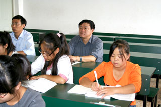 9月5日新生上课第一天,党委书记梁晓谷,副书记孙勇,副书记、纪委书记李媛芬,副校长李翔、张寿国、刘海发等在校的党政领导,在相关部门负责人的陪同下深入到新生所在班级,听课检查教学工作。