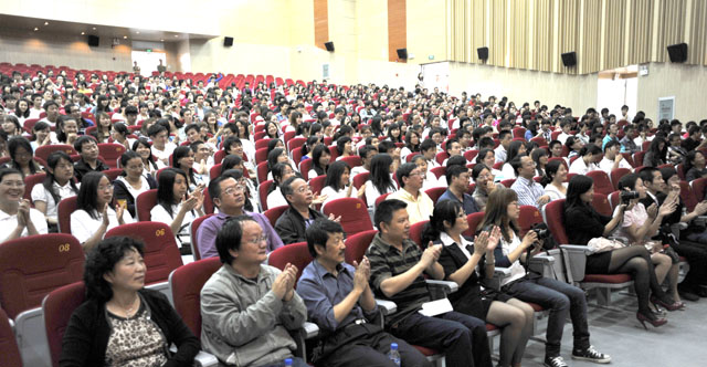梁书记指出,今年的毕业生,拥有了许多第一,他们是从beat365英国官方网站美丽的新校园走出的第一批毕业生,是在崭新的学生会堂举办毕业典礼的第一批学子,是多年来beat365英国官方网站毕业典礼“四处跑场”的第一个终结者。梁书记还提到了在6月9日新校园落成典礼移动互动平台上各位学子的留言和祝福所表达的对新校园由衷的赞美、对学校老师的感激之情以及离别之际的眷恋之情,这是教师们辛勤付出所得到的回报,是最令老师们感到欣慰的事情。同时,梁书记代表全校教职员工向2011届毕业生表示,学校为有你们而骄傲,学校永远是你们的家园,学校和老师永远爱你们。