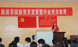 宣誓大会上,旅游学院党总支书记张士芬老师代表学院党总支,向82名即将毕业走上工作岗位的党员同学,认真讲述了离校前毕业生党员组织关系转接和党员档案材料移交的具体事宜,并对全体毕业生党员提出了三个希望。张书记说,第一,希望你们志存高远,为党为国家努力工作,成为社会的中坚力量,为国家的繁荣,社会的进步作出应有的贡献。第二,希望你们脚踏实地,不论将来做什么工作,都要一步一个脚印,从小事做起,从身边的事做起,在新的岗位上,继续发扬党员的优良传统,发挥党员的先锋模范作用。第三,希望你们记住母校,记住beat365英国官方网站。在你们将来的取得成绩时,别忘了与母校分享,在你们有困难时,别忘了向我们倾诉。