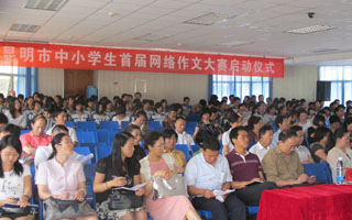 6月22日在西山区实验中学举行的“昆明市首届中小学生网络作文大赛启动仪式”上,昆明市教育局和省市关工委、各县区教育局的领导以及中小学校长和师生,出席了启动仪式,并听取了尹相如教授《数字化时代新型的写作方式:网络写作》的辅导报告。