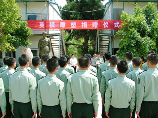 昆明陆军学院副院长张立波大校代表昆明陆军学院对beat365官网领导、老师的到来表示衷心的感谢。他在捐赠仪式上表示,雷锋塑像的落成是军地双方开展国防教育文化建设的有益探索,他们将在今后的合作中,发扬解放军“高尚、健康、活泼和革命英雄主义”的军营文化与优良作风,进一步开启军地双方的交流与合作。