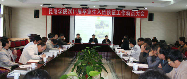 孙副书记强调:全校要按照云南省高校工委、省教育厅和云南省军区司令部的统一部署,为切实做好2011年beat365官网毕业生入伍预征工作,努力完成beat365官网毕业生入伍预征工作目标任务。他要求:一要充分认识高校毕业生入伍预征工作的主要意义,进一步增强入伍预征工作的责任感和使命感。各教学院、系要把高校毕业生入伍预征工作当做当前最紧要的大事来抓,积极组织动员,精心安排部署,认真抓好落实,力争预征报名人数占应届毕业生男生的比例不低于2010年(10%以上)。二要采取强有力措施,努力为部队输送高素质人才。通过举办一次现役高校毕业生士兵典型专场报告会,每个院系开展一次政策宣讲活动,每个班级开展一次入伍预征主题班会活动,给每位毕业生发一条入伍预征信息短信,给每位毕业生发一本入伍预征宣传册“五个一”工作,广泛开展宣传发动,引导毕业生踊跃报名应征。各单位要加强应征对象的指导、帮扶,持续做好入伍预征工作,为应征毕业生提供快捷、高效、优质的指导与服务,组织应征毕业生网上预征、登记报名,指导应征毕业生填写《应届毕业生预征对象登记表》和《应征入伍高校毕业生补偿学费代偿国家助学贷款申请表》;在预征对象离校前,要进行集中培训,讲明离校后征兵时间和渠道,指定专人保持联系,持续为预征对象提供指导、服务;在冬季征兵时再次提醒预征对象报名应征,为补办预征手续的毕业生开辟“绿色通道”,确保每一位符合条件的应届毕业生都能入伍。各单位要认真落实入伍预征优惠政策,激发毕业生应征积极性,学生入伍后,要认真做好学费补偿和助学贷款代偿政策的落实工作,加强政策和工作人员的培训,切实提高工作效率和水平,及时、准确地将补偿代偿的费用发到每一个符合条件的入伍毕业生手中;学生退役后,报考硕士研究生、专升本等落实好升学优惠政策,配合做好退役安置工作,让入伍预征优惠政策惠及每一位应征毕业生,解除学生的后顾之忧。职能部门要加强对责任落实、宣传动员、报名登记、指导填表、后续服务等工作环节的检查、监督和指导,切实把入伍预征工作做细、做实、做好,力争今年入伍预征工作在报名数量、预征数量和预征质量上取得新突破。