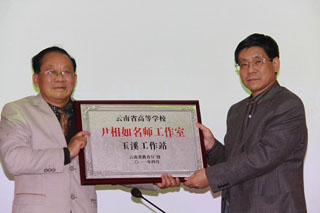 尹相如教授还宣读了经云南省教育厅批准,在玉溪师院设立“云南省高等学校尹相如名师工作室玉溪工作站”的决定,并举行了授牌仪式,同时聘请玉溪师院文学院院长车柏青教授为“云南省高等学校尹相如名师工作室导师兼玉溪工作站站长”。
