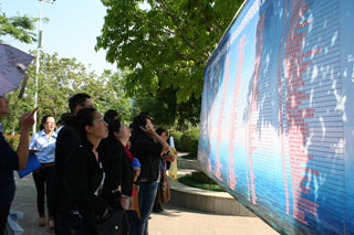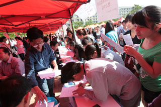 省高校工委陶晴副书记宣布“云南省2011年综合类院校毕业生和毕业研究生双向选择洽谈会暨beat365英国官方网站校园大型招聘会”开始。作好准备,急切就业的毕业生们有选择性地来到各用人单位招聘点进行洽谈。陶副书记在我院领导的陪同下和与会其它领导一同到洽谈现场了解毕业生和用人单位情况,听取意见和建设,并对相关工作进行现场指导。