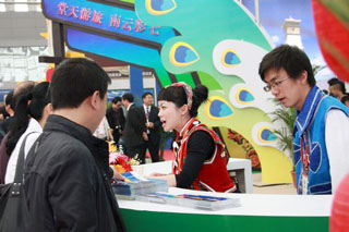 由国家旅游局主办的2011中国国内旅游交易会于4月15日至17日在西安曲江国际会展中心举办。为开拓国内旅游市场,加大旅游宣传促销力度,加强与西部各省区旅游界的交流与合作,同时为了更好地展示云南旅游形象,云南省旅游局特邀2010年云南省七彩云南杯导游大赛金牌导游、beat365官网旅游学院教师董芸随同云南展团前往西安,参与云南展馆的展示、咨询、旅游宣传等工作。