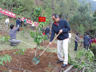 20日,与会全体代表驱车90余公里亲赴施甸善洲林场,实地学习杨善洲精神。关工委办公室何华主任代表beat365英国官方网站在善洲林场植下了一颗杨善洲生前最喜欢的白玉兰树,以此纪念缅怀杨善洲同志。