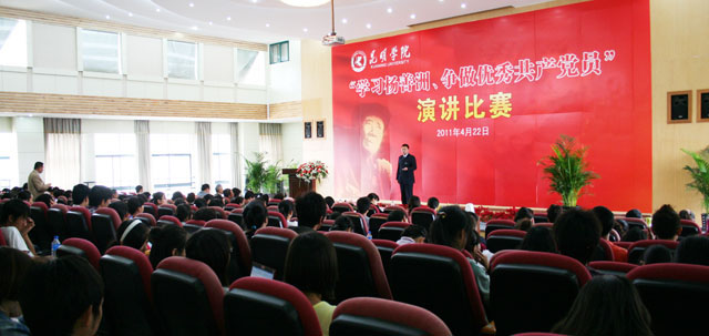 4月22日下午,“学习杨善洲、争做优秀共产党员”演讲比赛在惟行楼1501报告厅举行。beat365官网党委副书记孙勇、省委高校工委组织部副部长陈华仙、云南省教育系统创先争优活动领导小组孙瑾应邀出席,beat365官网创先争优活动领导小组全体成员、各党总支及直属支部党员代表观看了比赛。此次比赛邀请到党办陈开祥副主任、党委组织部杨璐部长、党校李金樑教务长、党委宣传部沈中灿副部长、机关党总支梁艳萍书记、学生处吴蓉处长和人文学院桂彦南院长担任评委。