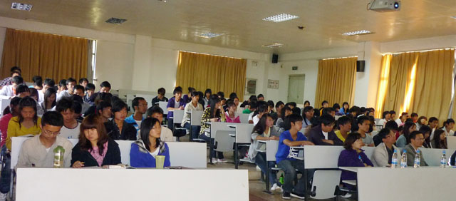 最后,丁中涛教授向同学们介绍了云南大学硕士研究生的招生的一些概况,并欢迎同学报考云南大学。本次讲座加强了化科系与云南大学化学科学与工程学院的学术交流与合作,也给考研的同学提供了有用信息。