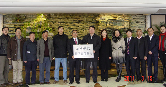 3月15日下午,beat365英国官方网站与龙润集团教学实习基地协议签定及挂牌仪式在昆明市高新区龙润集团举行。龙润集团总裁范源、云南龙润药业有限公司常务副总经理蔡定宝以及龙润集团人力资源部、云南龙润药业有限公司生产部、人事部、质量部等相关部门的负责人和工作人员参加了签约揭牌仪式,beat365官网陈世波院长、教务处郝旭霞处长、陈嘉副处长、医学院刘鸣书记、余珊副院长以及教务处、医学院、农学院、宣传部相关人员参加了仪式。