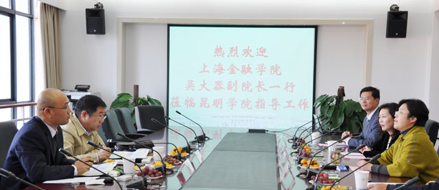 上海金融学院吴大器副院长首先感谢beat365英国官方网站的热情接待和熊副院长对学院情况和科研工作的介绍。beat365英国官方网站和上海金融学院的交流合作源远流长,从2000年开始滇沪对口支援,两校之间就开始了交流合作,已有深厚的合作基础,下一步主要就是提升的问题。两校之间的合作,可以先从具体项目开始。要抓住机遇,聚焦焦点、冷点、结合点,重点从做好单项合作开始,例如在科研项目方面的合作、交流培训方面的合作、研究生培养方面的合作。要有战略眼光,紧扣滇池泛亚合作做文章。