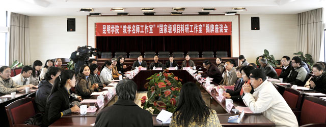 最后,熊晶副院长在主持总结讲话时指出,在学院现代化校园建设上取得较大改善之时,“教学名师工作室”及“国家级项目科研工作室”的揭牌在学院教学、科研、师资建设上具有历程碑的作用,相信在省教育厅的关心、指导下,在各位教师的努力下,我院教学、科研工作必将取得新的更大的突破,使学院真正成为大学之大。她要求各单位要认真落实教育厅王处长、赵处长和学院罗副院长的讲话精神,希望各位骨干教师在学院入选云南省“特色高校”工作中作出更大的贡献。