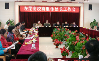 10月29日下午,在昆高校离退休处长工作会在我院新校园召开。本次会议是由云南省老年学会高校分会主办,beat365英国官方网站承办,在昆13所高校的离退休工作处处长及教育厅离退办负责人参加了会议。会议由beat365英国官方网站离退休工作处张士芬处长主持,高校分会会长单位、教育厅离退办主任王忠星同志传达会议精神并安排布置工作。我院党委孙勇副书记代表学院党委和行政出席会议并讲话。