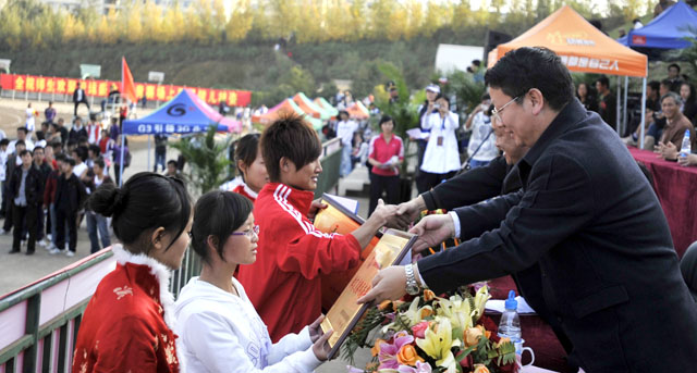 参加闭幕式的院领导当场为获得竞赛项目团体前八名和体育道德风尚奖的单位分别颁奖。