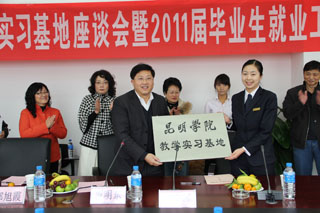 座谈会上,罗明东副院长还代表学院与昆明七彩云南实业股份有限公司、云映居酒店、福昇花园酒店、官渡大酒店、温泉心景花园酒店、西山国家级风景名胜区管委会等六家旅游企业签订了教学实习基地建设协议书并授牌。
