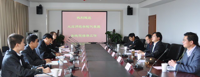 10月22日上午,大庆师范学院杨锐锋副院长一行5人到我院进行考察交流。罗明东副院长和院办、教务处、科研处负责人进行了热情接待。 在院办董副主任的陪同下,大庆师范学院代表团一行首先参观了洋浦新校园,接着举行了座谈交流。